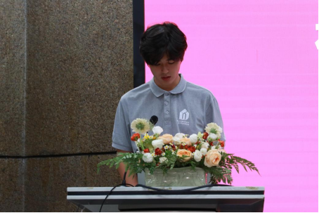建筑2203班员工赵孟秋作为在校生代表发言,他回顾初入太阳成集团tyc122ccvip时在设计与模型制作中的困惑,以及三年来在调研与实践中、在师长悉心指导下的成长与收获,祝愿同学们在绘好每一张图纸、做好每一次设计,不断探索并找到自己热爱的事业方向。
