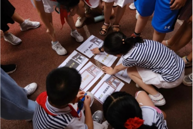 在正式出发采集社区色彩前,志愿者们向孩子们讲述了活动规则并与孩子们一起贴上了专属自己队伍的彩色贴纸,孩子们按照年龄被分为了6个4人小组。